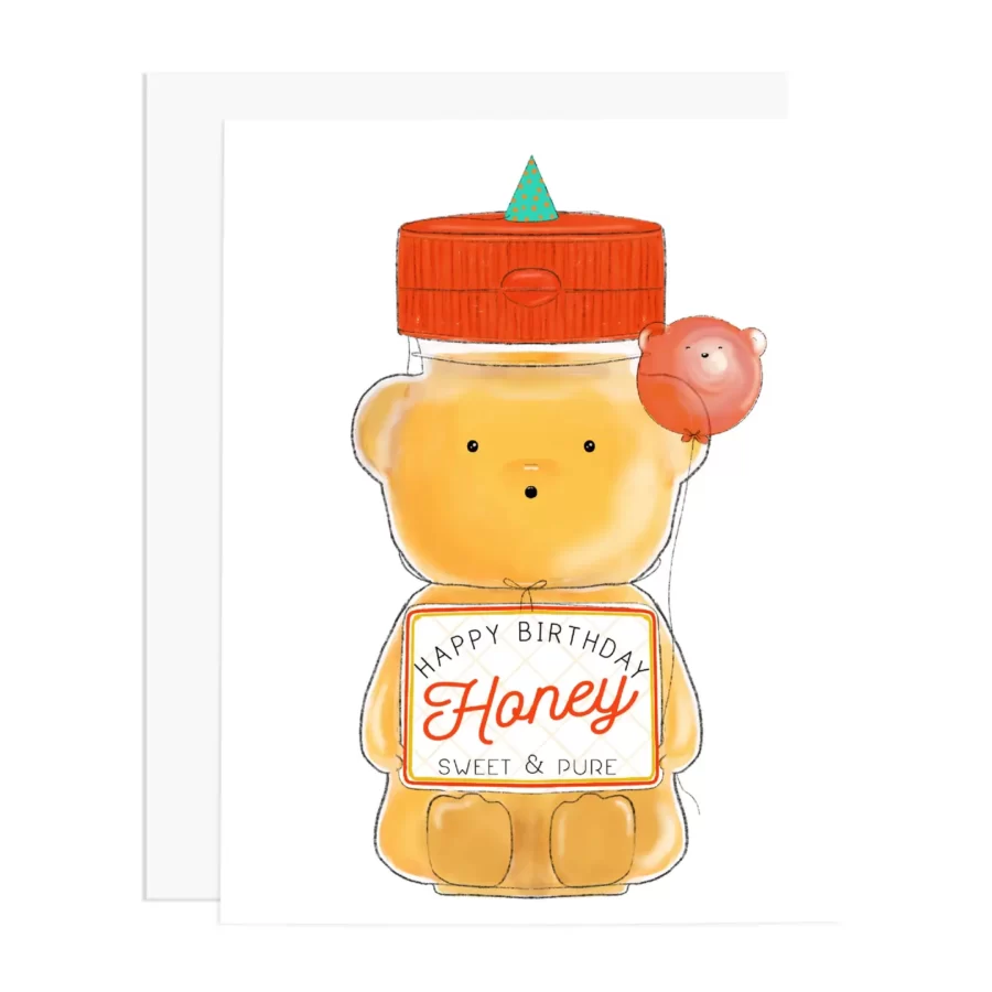 Sweet Birthday Honey Bear. This is a sweet card for a sweet soul. Beautiful bright white cover paper, blank inside, includes an envelope with peel & stick.